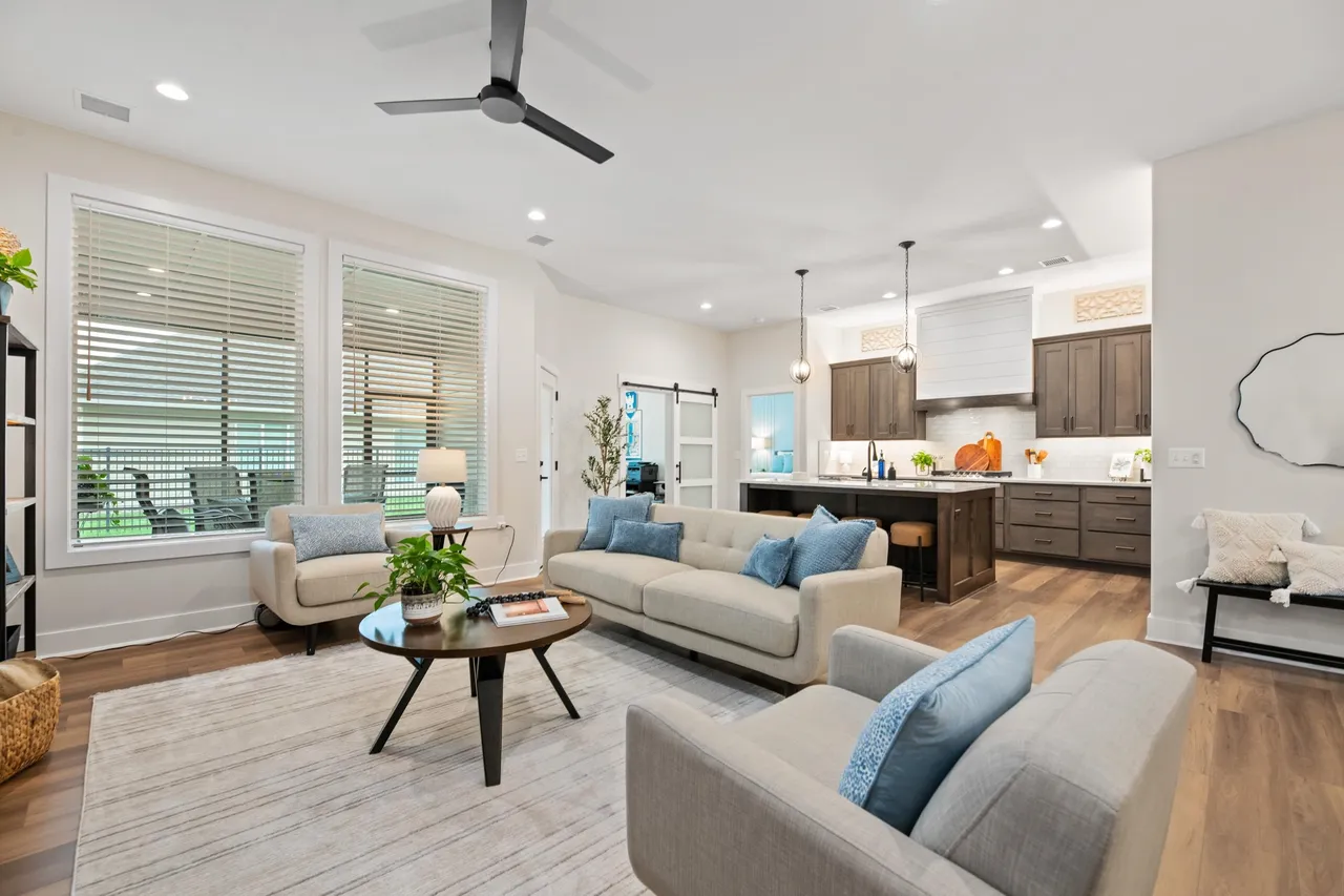 home with an office room and a 3 car side-load garage, offers a luxurious, comfortable and peaceful lifestyle. The large kitchen,